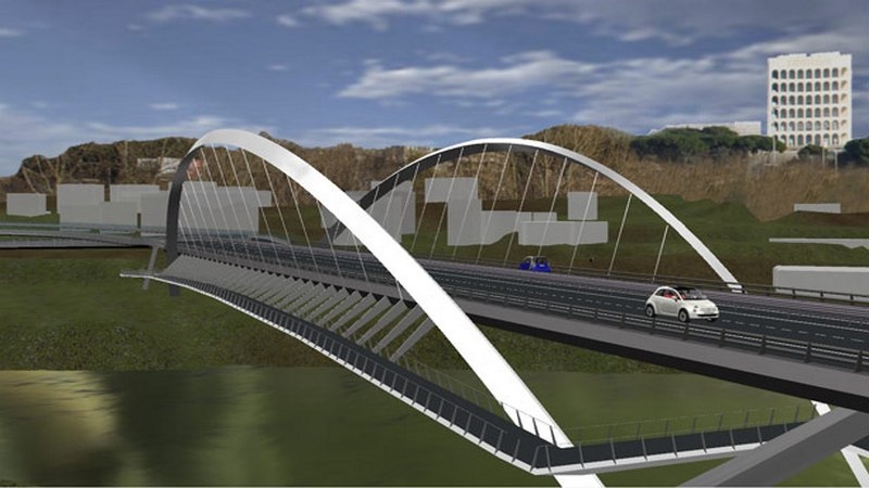 Il progetto, che ha vinto il concorso internazionale, è quello del gruppo guidato da Enzo Siviero con Juan Arenas de Pablo. Sarà realizzato con un unico arco in acciaio, con travatura metallica retta da tiranti, teso sul Tevere tra l’Eur e l’altura opposta a valle dell’esistente ponte della Magliana.