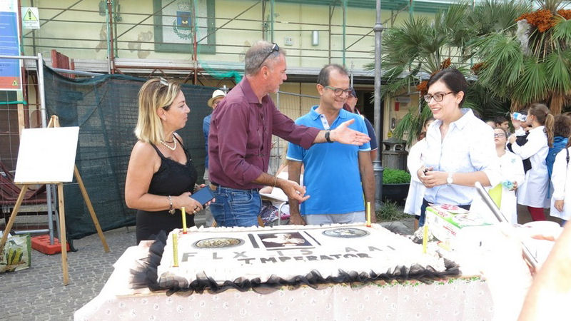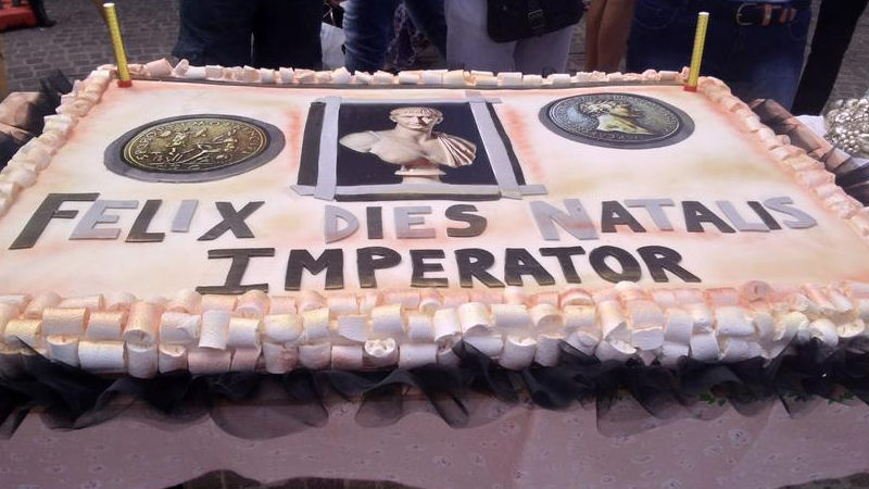 Momento spettacolare dell’evento è stato il taglio della mega torta, realizzata dal maestro pasticcere Andrea Rustichelli, dedicata al compleanno dell’Imperatore, lo spegnimento da parte dei ragazzi delle candeline ed il coro spontaneo che è partito dalla piazza intonando “Tanti auguri Traiano”.