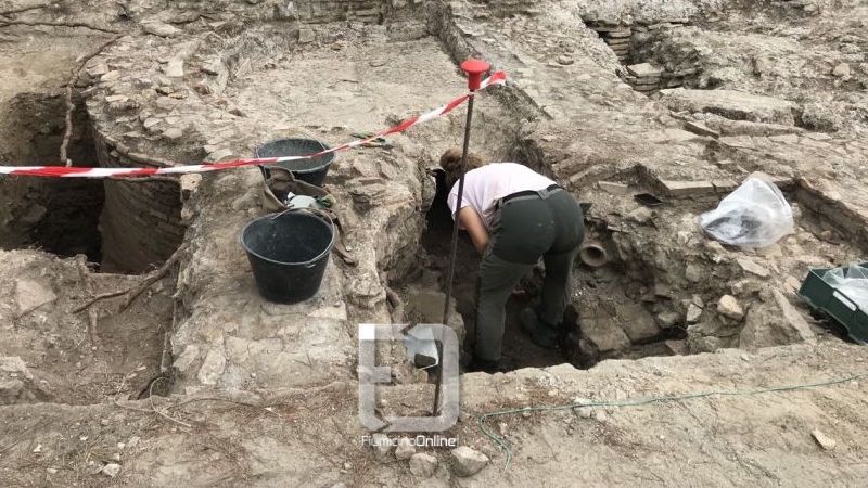 In questa settimana è venuto del tutto in luce il caldarium delle terme, ovvero la piscina destinata all’acqua calda, ed è emerso con chiarezza l’intero sistema di riscaldamento. “Il praefurnium nel quale ardeva la legna e l’intercapedine nella quale circolava l’aria calda, sotto il pavimento, sorretto da piccoli pilastrini in laterizio, le suspensurae.