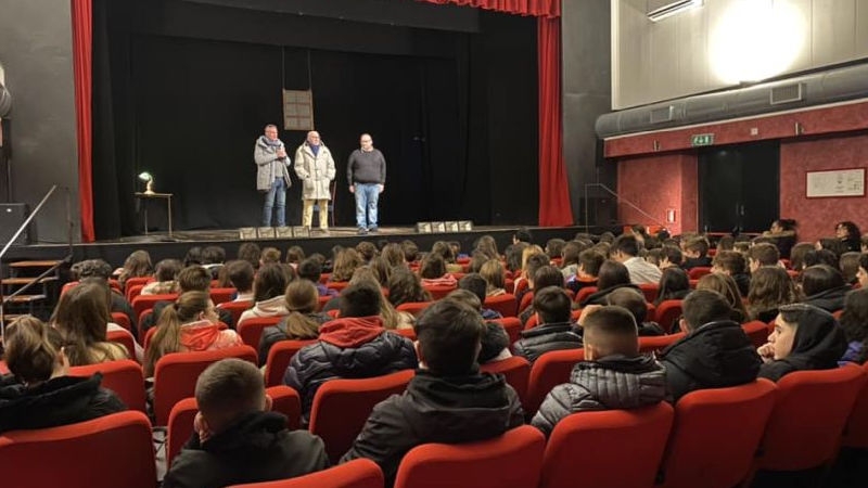 Le ragazze e i ragazzi delle terze medie e del primo e secondo superiore hanno partecipato allo spettacolo che ha trattato con attenzione ed intensità il tema della deportazione degli ebrei dal ghetto di Roma. Un atto unico con protagonista un uomo misterioso e il suo strano racconto che parte dalla placida Roma degli anni ‘30 per arrivare alla miseria delle leggi razziali, della guerra, della lotta partigiana e della deportazione. Il pezzo dall’alto valore didattico e emotivo è prodotto da Ettore Scola ed accompagnato dalle struggenti canzoni, scelte per l’occasione da Gianni Borgna.
