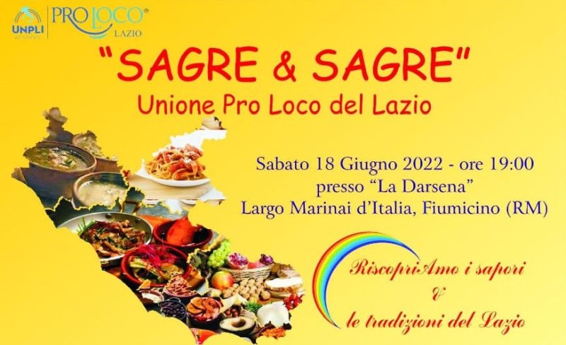 Nella stessa location, sabato 18 giugno, sempre la Pro Loco farà agli onori di casa a “Sagre & Sagre”, la Festa regionale delle Pro Loco del Lazio, sotto l’egida dell’Unpli (Unione Pro Loco del Lazio), che era stata già assegnata a Fiumicino nel 2020 ma che, per l’emergenza sanitaria, era saltata. Dalle ore 19 saranno ospitati gli stand di diverse Pro Loco “per riscoprire i sapori e le tradizioni del Lazio”, e che esporranno prodotti tipici, proporranno folklore e faranno conoscere itinerari turistici e proporranno