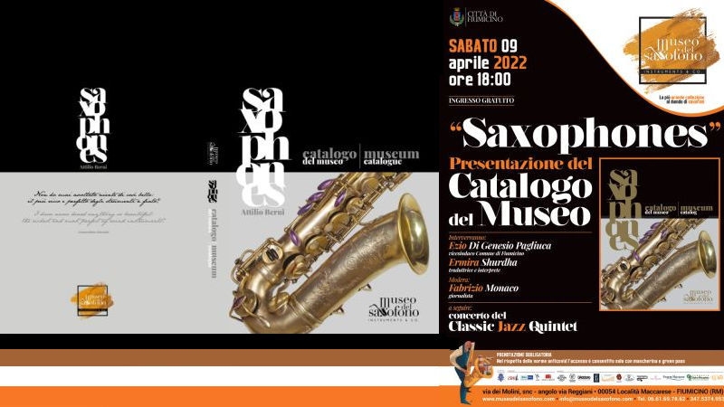 Sabato 9 aprile è in programma un grande evento al Museo del Saxofono a Maccarese. Nella suggestiva cornice che ospita la collezione di saxofoni più grande al mondo verrà presentato, alle 18, il Catalogo Ufficiale del Museo, Saxophones. Oltre all’autore e ideatore del progetto editoriale, il direttore del Museo Attilio Berni, interverranno in tale ambito il vicesindaco del Comune di Fiumicino Ezio Di Genesio Pagliuca e la traduttrice e interprete Ermira Shurdha. L’incontro verrà moderato dal giornalista Fabrizio Monaco.