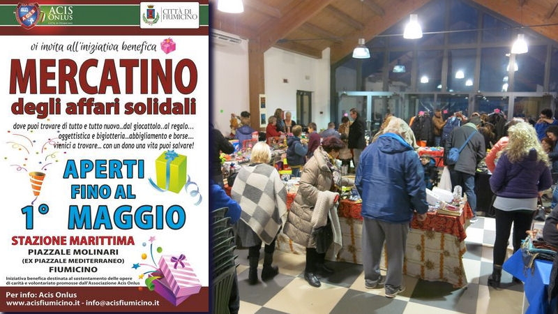Prosegue sino al primo maggio il Mercatino degli Affari Solidali organizzato dall’Associazione Acis Onlus presso i locali della Stazione Marittima di Fiumicino, in Piazzale Molinari, ex Piazzale Mediterraneo.