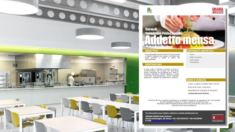 “E’ un’occasione – spiega – per acquisire nuove competenze nonché tutte le nozioni teoriche e pratiche necessarie per operare nel settore delle mense aziendali. Inoltre, al termine del corso, è prevista l’acquisizione di un attestato di frequenza e la segnalazione dei curricula dei candidati alle filiali dell’agenzia Umana, presenti sul territorio del corso”.