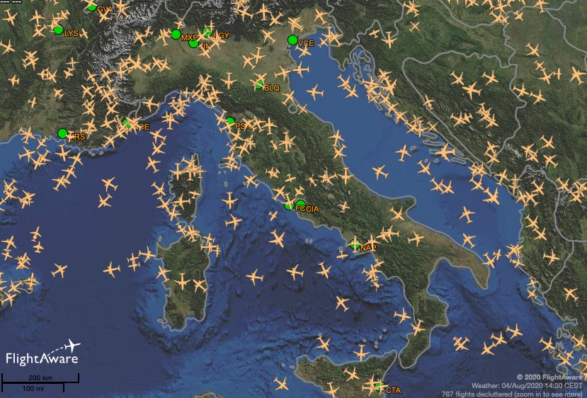 Immagine acquisita dalla piattaforma di dati e tracciatura voli FlightAware