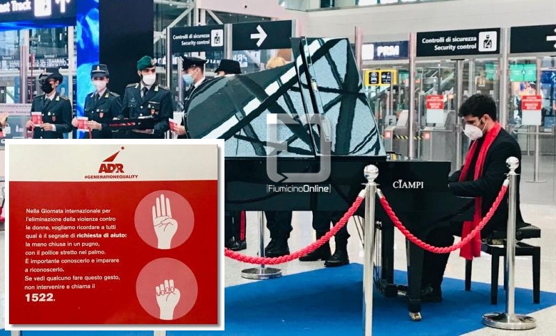 Oggi, giovedì 25 novembre 2021, Polizia di Stato, Guardia di Finanza, Carabinieri, Agenti delle Dogane, Agenti della Polizia Penitenziaria, Polizia Locale del Comune di Fiumicino, Enac ed Enav ed operativi di Aeroporti di Roma, all’interno dei terminal 1 dell’Aeroporto di Fiumicino, hanno distribuito braccialetti rossi ed opuscoli per sensibilizzare i viaggiatori sul tema dell’eliminazione della violenza contro le donne.