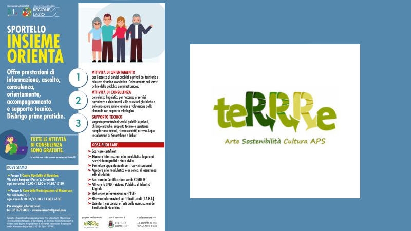A Fiumicino al via lo “Sportello Insieme Orienta”. L’Associazione TeRRRe Arte Sostenibilità e Cultura in collaborazione con I.I.S Leonardo DaVinci, l’associazione di categoria Flai-Cgil Roma e Lazio, con il patrocinio del Comune di Fiumicino è risultata vincitrice del bando regionale “Comunità Solidali 2020 DD. N.G14743 del 07/12/2020” e ha avviato uno sportello destinato ai cittadini che offre prestazioni di informazione, ascolto, consulenza, orientamento, accompagnamento, supporto tecnico e disbrigo prime pratiche per i servizi della pubblica amministrazione.