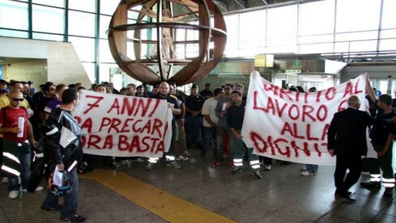Centinaia di lavoratori, arrivati da tante parti d’Italia hanno accolto l’appello della manifestazione convocata dalla Cgil, da USB, dalla CUB e dal comitato CORISTA sul dramma occupazionale che sta attanagliando l’aeroporto di Fiumicino, dall’assoluta emergenza dei licenziamenti di Alitalia 2008, passando per Argol, Groundcare, Alitalia 2014, AMS, Meridiana e per finire ai precari aeroportuali senza certezze di sorta, con le parole d’ordine di lavoro, reddito e pensione.