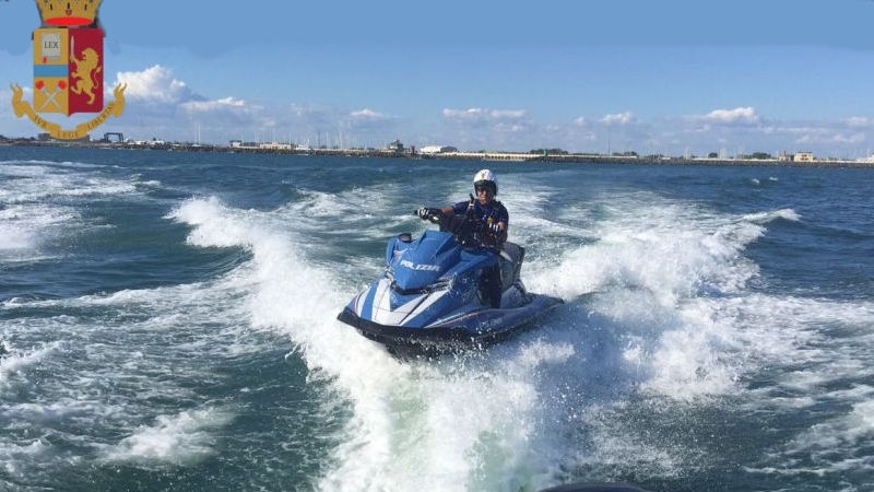Nonostante gli acquascooter avessero poco pescaggio, passando la cima dalla barca in avaria all’altra, i poliziotti sono riusciti ad allontanare il natante in difficoltà e a ormeggiarlo all’interno del canale dei pescatori.