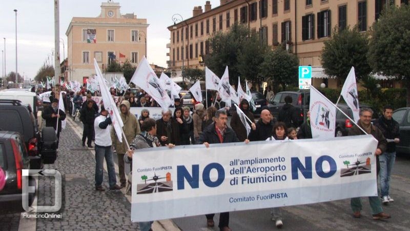 Fiumicino scende in piazza e urla il suo “No” all’ampliamento dell’aeroporto Leonardo Da Vinci. Oltre 500 persone hanno manifestato ieri pomeriggio in corteo contro il progetto di raddoppio, definito da tutti inutile, devastante e pericoloso. Decine le associazioni e i comitati scesi in piazza, compresi i tre candidati alle primarie del centrosinistra di Fiumicino Anna Maria Anselmi di SEL, Esterino Montino per il PD e Massimiliano Santi della FdS, che hanno aderito alla protesta organizzata dal Comitato Fuoripista.
