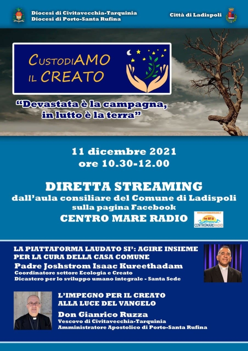 Dopo i saluti del vescovo Gianrico Ruzza e del sindaco di Ladispoli, Alessandro Grando, sono previsti gli interventi di padre Joshtrom Isaac Kureethadam, coordinatore del settore Ecologia e Creato del Dicastero per lo Sviluppo Umano Integrale della Santa Sede e degli animatori delle due diocesi.