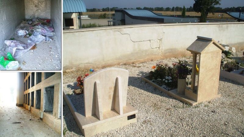 “Miasmi simili a putrefazione, mancanza di acqua potabile, quella che c’è è di colore marrone, rubinetti guasti, deiezioni animali e ragnatele che ricoprono i corridoi degli ossari. Tumuli vuoti trasformati in rifugio per piccioni e altri uccelli. Crepe ovunque, wc sporchi, tombini per lo scolo dell’acqua pieni zeppi di cartacce e foglie, terrazzamenti pensili per la tumulazione della salme realizzati quando l’area a terra è vastissima, e qui non se ne capiscono i motivi. Un degrado non tollerabile in un cimitero, per altro inaugurato solo qualche anno fa come Santa Ninfa” è quanto afferma Luigi Satta, della Lista Civica Noi Insieme.