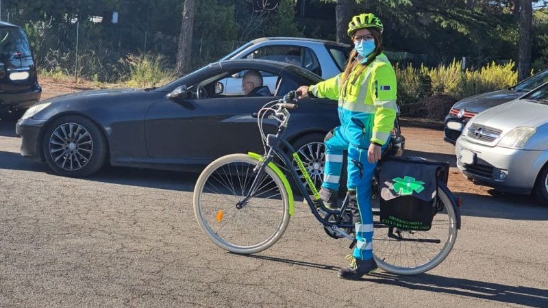 “Sono state utilizzate – spiega Cortani – due ‘bici ambulanza’, che normalmente sono attrezzate ai lati con delle bisacce dove sono inseriti un defibrillatore ed altri presidi di primo soccorso, ma che stavolta invece sono risultate utili per supportare il personale dell’istituto nella distribuzione della modulistica da compilare per poter effettuare il tampone e, al contempo, quei generi di primissima necessità come acqua e biscotti, per alleviare la giornata di chi sta in fila per ore”.