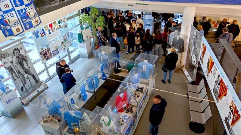 Tante le famiglie con bambini e ragazzi, per ammirare, nella hall della sede comunale, maglie storiche, cimeli, gigantografie, video.