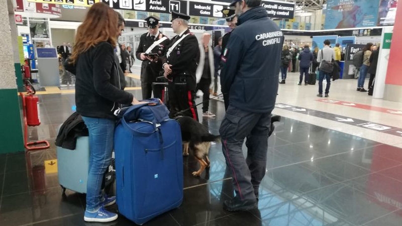 Nel corso del servizio, svolto nell’arco orario di maggior afflusso di passeggeri nei pressi dei viali d’ingresso, uscita e antistanti i terminal, complessivamente i Carabinieri hanno identificato 107 persone, controllati 35 veicoli, contestato 7 sanzioni amministrative al codice della strada.