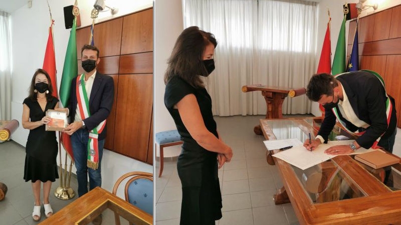 “Dopo la firma dell’atto – prosegue – ho consegnato alla nostra nuova concittadina, la bandiera italiana, una piccola bandiera del Comune e una copia della Costituzione introdotta da una lettera firmata dal sindaco Montino e da me che è il nostro modo per accogliere e fare sentire a casa loro tutte e tutti coloro che scelgono il nostro Paese per vivere e costruirsi un futuro“