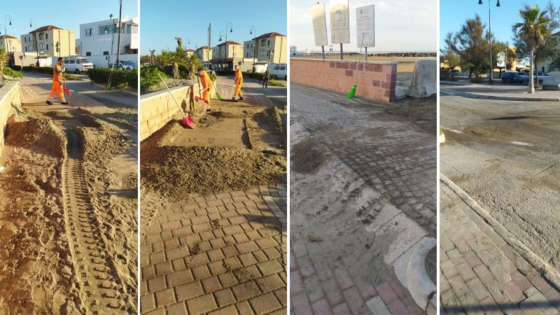 La sabbia era stata trascinata fuori dai muretti di contenimento della spiaggia a causa del forte vento nell’ondata di maltempo che ha colpito il territorio la scorsa settimana. Rimangono però ancora cumuli di sabbia nel tratto terminale del lungomare.