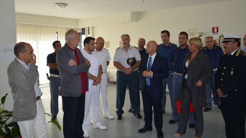 Ad accoglierlo il Primo Dirigente della Polizia con le rappresentanze della Capitaneria di Porto, Guardia di Finanza, Polizia Provinciale e Polizia Locale