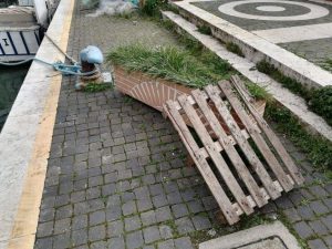 È la solita storia del cane che cerca di mordersi la coda perché la piccola pesca aveva chiesto dei recipienti sopra la banchina per gettare il pattume che resta impigliato nelle reti. Aveva anche “gridato” all’Autorità portuale, competente della gestione delle sponde del canale navigabile, la necessità di avere dei punti d’acqua per spazzare la superficie una volta terminata la sistemazione delle attrezzature. Tutte carenze che contribuiscono a rendere la passeggiata lungo le banchine vicino al “2 Giugno” proibitiva e la cosa bella è che a Fiumicino tutti gli Enti deputati a fare qualcosa conoscono il problema ma nessuno fa nulla per rimuoverlo.