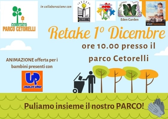Sabato 1 dicembre a partire dalle ore 10.00, si svolgerà una mattinata di pulizie presso il Parco Cetorelli a Fiumicino. L’iniziativa, aperta a tutti i cittadini che vorranno contribuire alla riqualifica del parco stesso, è organizzata dal Comitato Cetorelli.