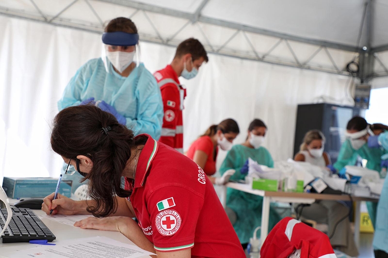 Il centro, gestito dalle Aziende Sanitarie della Regione Lazio e presidiata dal personale medico e paramedico della CRI, sarà il primo grande centro vaccinale nazionale in un aeroporto