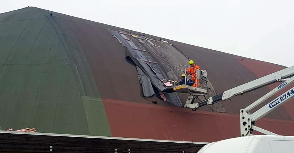 “Le squadre dei Lavori pubblici questa mattina, approfittando della tregua data dal tempo, hanno provveduto a rimuovere dal tetto del Palazzetto dello sport la guaina che da ieri stava volando in strada a causa del forte vento (leggi qui). Per questo motivo dalle ore 11.30 di questa mattina è stato riaperto al traffico il tratto di viale Danubio di fronte al palazzetto, anche per il passaggio del Cotral”.