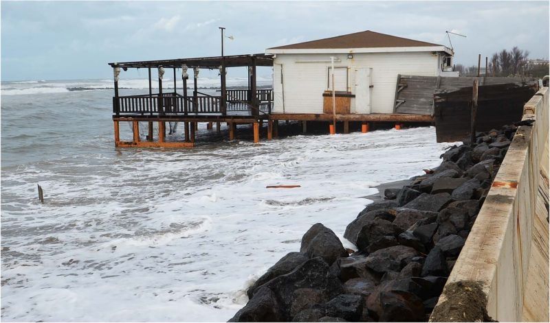 Tra gli stabilimenti a rischio sul litorale di Focene c’è ora anche l’Arcobaleno. “Per la seconda volta, nel giro di un mese, il mare entra indisturbato nel mio ristorante-bar – afferma Luciano De Angelis, proprietario dell’Arcobaleno -. Non si era mai verificato prima e questo conferma che è necessario un massiccio intervento sulle barriere, da parte della Regione, per prevenire futuri allagamenti e conseguenti danni”.