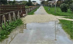 Ieri mattina, infatti, la stradina che costeggia la recinzione in castagnoli era sott’acqua (vedi foto) e molti runner sono stati costretti a cambiare percorso per la solita corsetta giornaliera.