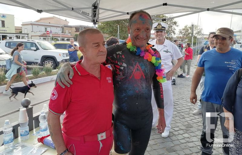 “Spero che non vi siate stancati di aspettarmi” queste le prime parole di Cimmino, rivolte al pubblico presente all’arrivo, tra i quali alcuni rappresentanti della Croce Rossa Italiana, della Capitaneria di Porto e l’Assessora allo Sport Valentina Torresi, che si è complimentata con lui.