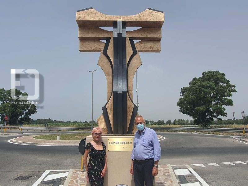 L’opera, alta 3 metri e, nell’estensione dei bracci, larga 2 metri, è stata posta su un basamento di marmo realizzato a cura del Comune di Fiumicino.