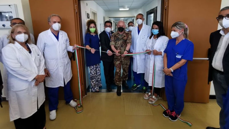 Evidente anche la soddisfazione del Maggior Generale dell’Esercito Italiano, Tommaso Petroni, che il 30 marzo scorso è stato nominato, dal Presidente del Consiglio Mario Draghi, Direttore dell’Unità per il completamento della campagna vaccinale e per l’adozione di altre misure di contrasto alla pandemia: “Sono estremamente felice, oggi, di essere qui al Grassi di Ostia per l’inaugurazione di questi nove posti letto di terapia intensiva, che si vanno ad aggiungere ai dieci posti letto di terapia intensiva della struttura modulare e che vanno quindi ad incrementare notevolmente la capacità di gestire eventuali recrudescenze della pandemia, soprattutto in un territorio come quello della ASL Roma 3, un’area molto vasta e ad alta densità di popolazione”.
