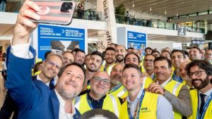 Il ministro Salvini ha poi ringraziato tutti i 40.000 lavoratori dell’Aeroporto Leonardo Da Vinci di Fiumicino, considerati come un mondo necessario per far funzionare ottimamente una infrastruttura di cose elevate dimensioni.