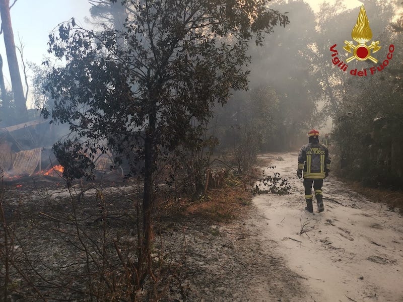 Continuano le operazioni di bonifica all’interno della pineta nella zona di Castel Fusano, dove ieri pomeriggio è scoppiato un incendio nei pressi di un ex campeggio (leggi qui). Sul posto diverse Squadre dei Vigili del Fuoco ordinarie e quelle straordinarie Boschive.