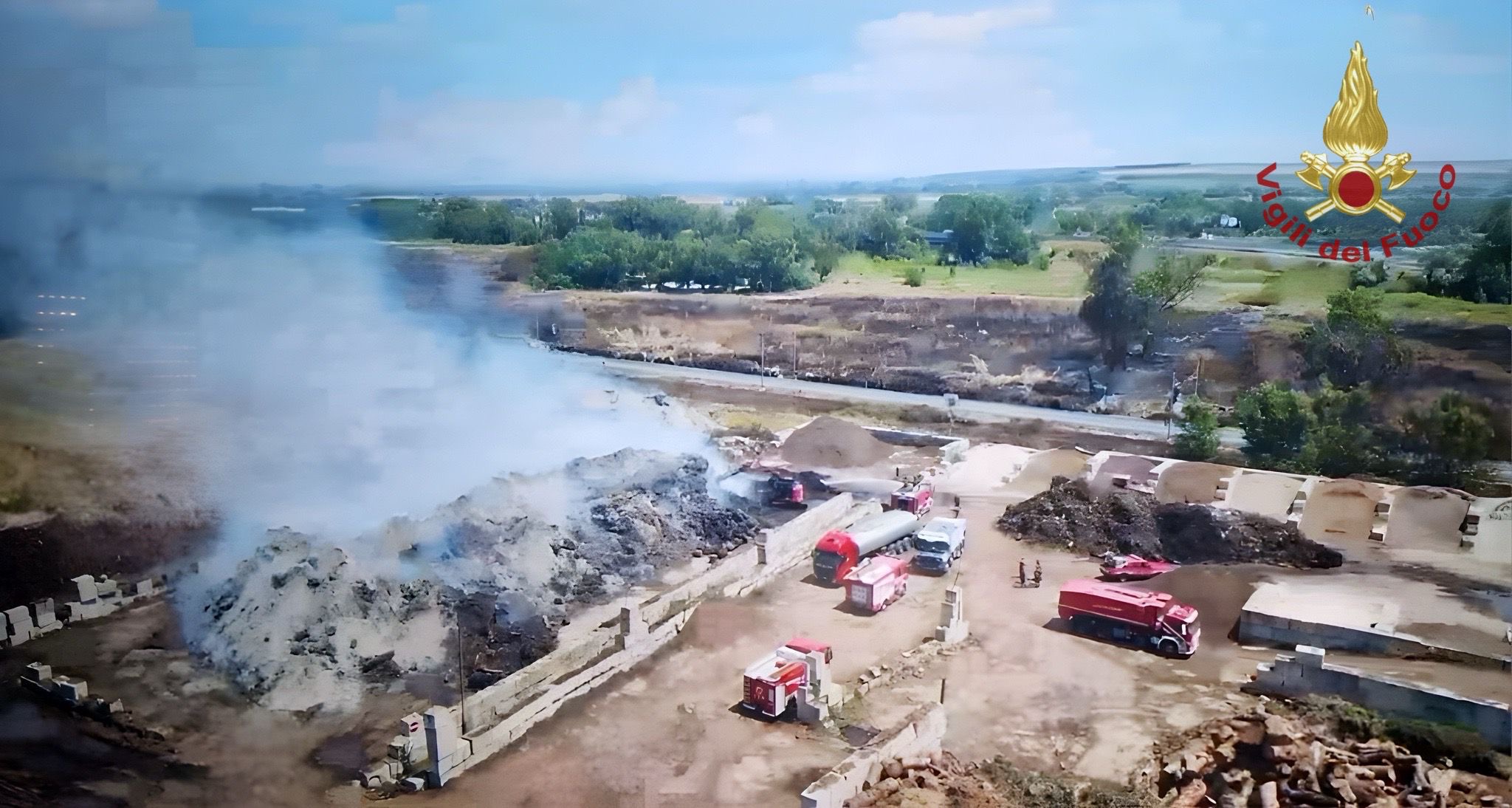Prosegue l’intervento di spegnimento dell’incendio all’interno del centro di compostaggio C&C Impianti, in via della Muratella, a Ponte Galeria.