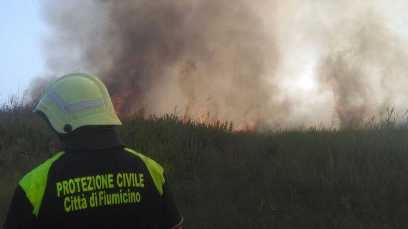 Nel pomeriggio un altro rogo di sterpaglie è stato spento a bordo strada lungo via delle Idrovore di Focene.