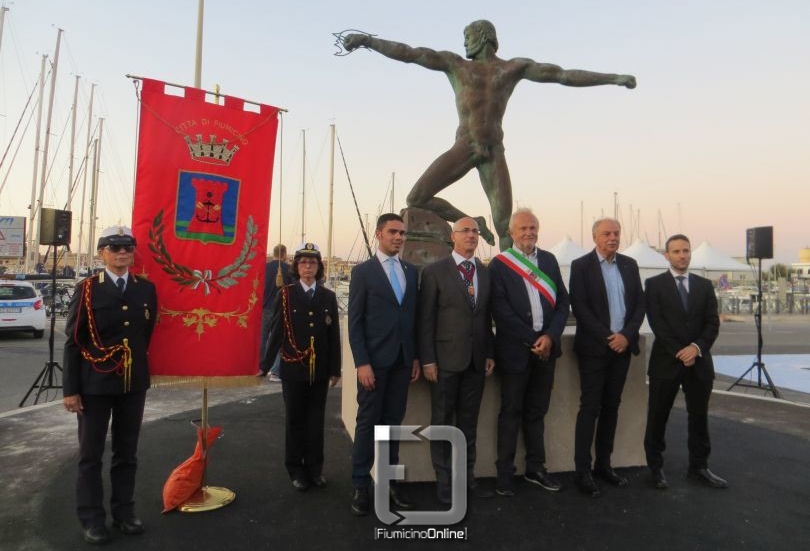 Grande inaugurazione per la nuova postazione della statua di Enea. L’opera di bronzo, del maestro Ugo Attardi, è stata posizionata in Darsena, nella nuova rotonda di ingresso, andando così a presentarsi al centro della città lasciando la vecchia collocazione, poco visibile, in cima alla scalinata del comune di Fiumicino di via Portuense. Presenti all’inaugurazione tanti cittadini che hanno voluto vedere da vicino l’imponente opera, gli amministratori del Comune di Fiumicino e ospiti d’eccezione.