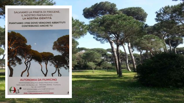 “Autonomia da Fiumicino” nel 2024 ha dato il via alla campagna “Salviamo la nostra Pineta, il nostro paesaggio, la nostra identità”, acquistando sette giovani alberi da donare al Comune di Fiumicino. Nello specifico, è stata proposta la piantagione di:
