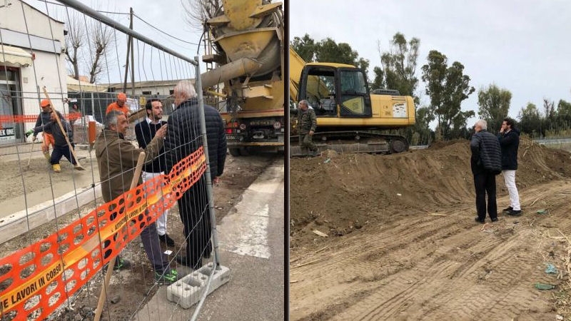 Poi il sindaco si è concentrato sui lavori in Darsena e dintorni: “Proseguono i lavori su Viale Traiano – ha aggiunto – oltre alla nuova pista ciclabile, infatti, si sta procedendo con il rifacimento dei marciapiedi. Questo tratto di ciclabile proseguirà fino a ricongiungersi con quella sul Lungomare della Salute, costeggiando lo specchio d’acqua della darsena. Un cerchio rosso (già visibile sull’asfalto, ndr), inoltre, disegna la rotonda che sorgerà nei pressi della darsena all’incrocio con via Giorgio Giorgis. Tutti questi cantieri fanno parte del progetto più ampio di ristrutturazione dell’intera area che ruota attorno alla Darsena e che proseguirà nei prossimi mesi“.