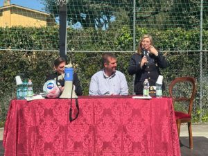 Tappa importante della manifestazione, quella che ha visto tutti i presenti riuniti davanti la Caserma dei Carabinieri di Fregene dove, il Maggiore Marco Califano della Compagnia di Ostia e il Comandante della Stazione di Fregene Luogotenente Danilo Pascucci, hanno sottolineato l’importanza della collaborazione con i cittadini per affermare la lotta contro la criminalità.
