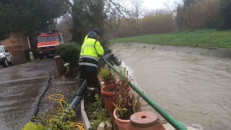 Presso il Consorzio di bonifica sono in azione anche altre due pompe da sei mila litri al minuto e stanno operando vigili del fuoco, polizia municipale e protezione civile.