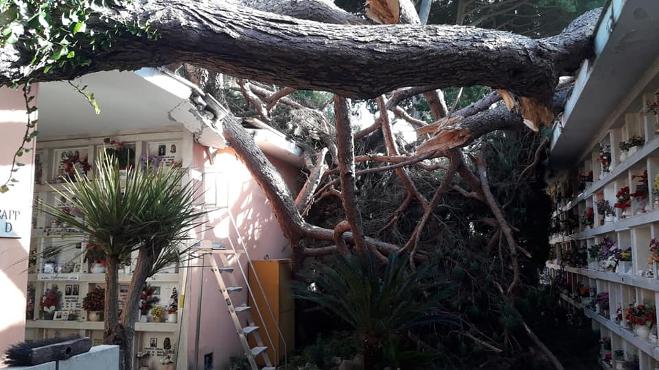 Il sindaco di Fiumicino, Esterino Montino, ha disposto la chiusura di tutti i cimiteri comunali e non solo quello di via Portuense dove sono caduti alberi facendo danni a molti loculi nel cimitero. Lo riferisce l’amministrazione comunale. Il cimitero è chiuso e lo rimarrà anche domani, per la caduta di alberi a causa del forte vento di queste ore.