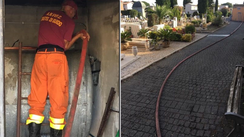 “Dopo la grande affluenza di ieri – aggiungono – i serbatoi d’acqua erano rimasti a secco. Per evitare futuri problemi ai fruitori del cimitero, soprattutto nel finesettimana, e in attesa che questa situazione si risolva definitivamente, la Protezione civile di Castel di Guido ha prontamente ripristinato i livelli nelle cisterne“.