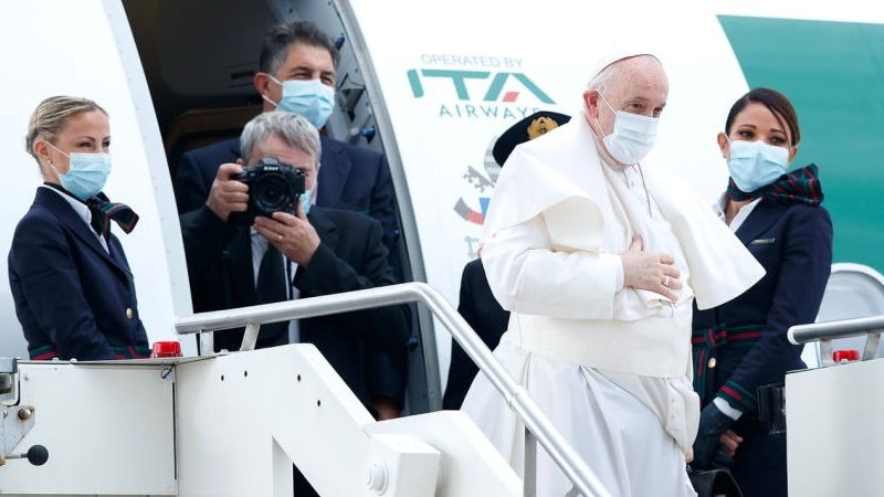 Papa Francesco è partito questa mattina alle 11.00, dall’aeroporto Leonardo da Vinci in direzione Cipro con la nuova Compagnia di Bandiera, Ita Airways. .