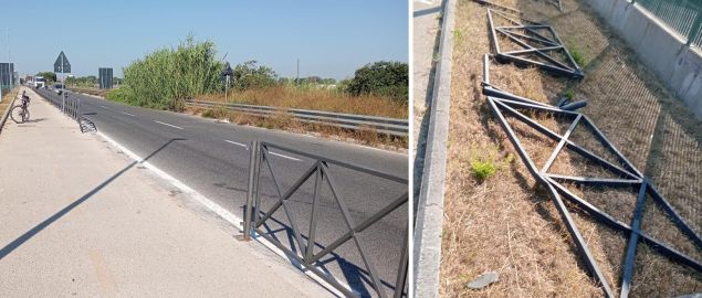 Questa volta a farne le spese è stata la recinzione della pista che costeggia il corridoio C5, nei pressi del plateatico di Via Foce Micina, dove, probabilmente nella notte, un veicolo ha completamente divelto la staccionata in ferro, ora abbandonata nell’area verde accanto alla ciclabile, ed ormai inutilizzabile.