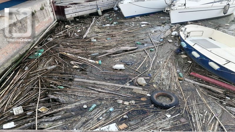 I detriti galleggianti hanno riempito in più punti lo specchio acqueo, dove sono ormeggiate decine di imbarcazioni da diporto, a seguito dell’ondata di maltempo dei giorni scorsi.