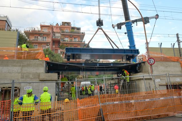 Due nuovi impalcati di 40 tonnellate, uno per ogni binario, composti da travate in acciaio della lunghezza di 10,40 metri. Nasce così un nuovo sottovia sulla linea FL1 tra le stazioni di Roma Ostiense e Fiumicino Aeroporto.