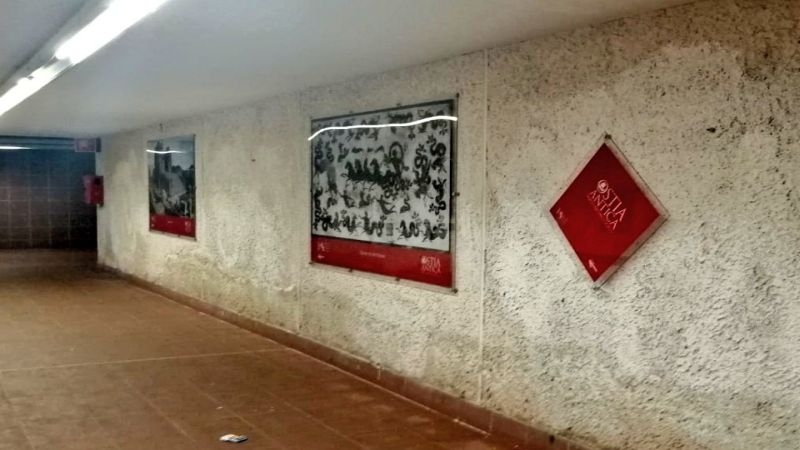 Rubato uno dei pannelli in plexiglass di benvenuto allestiti dal Parco archeologico di Ostia Antica, in collaborazione con Atac, nei mesi scorsi, nel sottopasso della stazione ferroviaria della line Roma-Lido. Un altro è stato danneggiato.