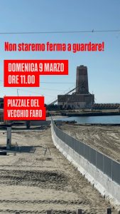 Domani, la protesta dei cittadini sul piazzale del Vecchio Faro; sabato 15 marzo, l’assemblea popolare del Comitato Tavoli del Porto; e domenica 23 marzo, la ‘Biciclettata contro il porto crocieristico’ del Collettivo No Porto. Mentre sabato 5 aprile si terrà un incontro promosso dai Comitati pro-Porto.