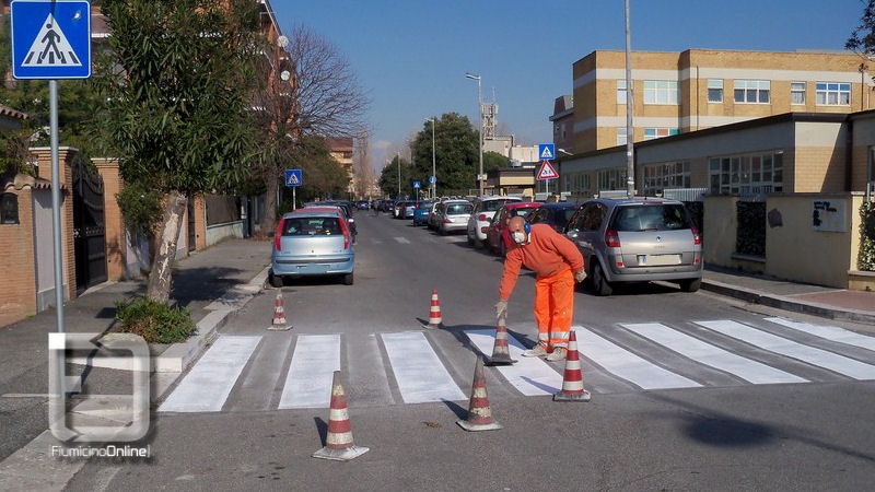 Al fine di migliorare la sicurezza dei pedoni sono iniziati i lavori di rifacimento della segnaletica orizzontale (attraversamenti pedonali) in prossimità della scuola Lido Faro di Fiumicino e sul ponte 2 Giugno.