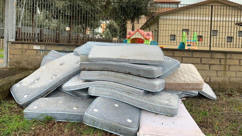 “Materiale che – aggiunge Severini – la scuola ha cambiato di recente ma che nessuno ha ancora provveduto a ritirare e smaltire. Il problema è la sicurezza e la salute dei piccoli. Infatti, proprio di fronte l’istituto c’è un cantiere con tratti di fogne a cielo aperto. E con le forti piogge di questi giorni quei materassi stagnanti potrebbero diventare la tana di topi e altri animali”.